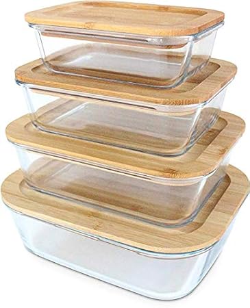 Amazon Com Glass Food Storage Containers With Lids Bamboo 4