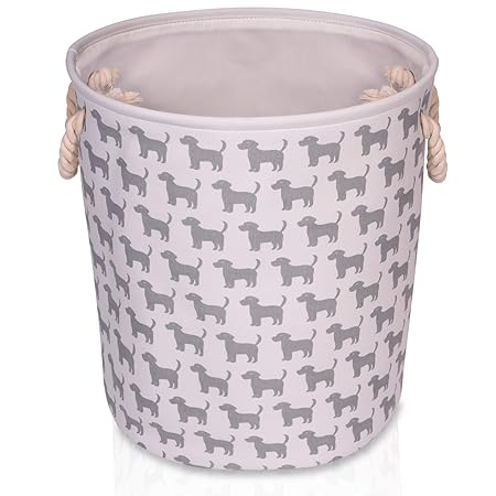 Cream Canvas Storage Basket Large Fabric Basket With Grey Dog