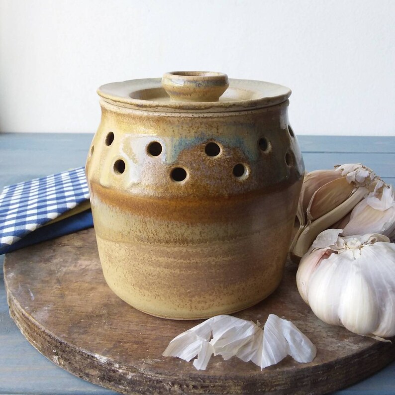 Beige Garlic Keeper Kitchen Pottery Ceramic Kitchenware Etsy