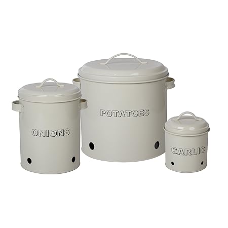 Simpa Set Of 3 Antique Cream Vintage Potatoe Onion Garlic Kitchen