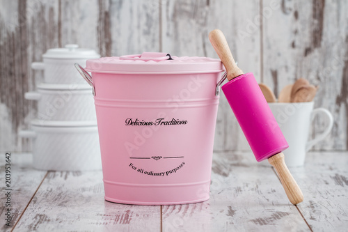 Vintage Colorful Potato Onion And Garlic Storage Containers On