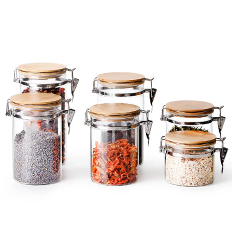 Bamboo Lid Glass Storage Bottle Kitchen Storage Containers Glass