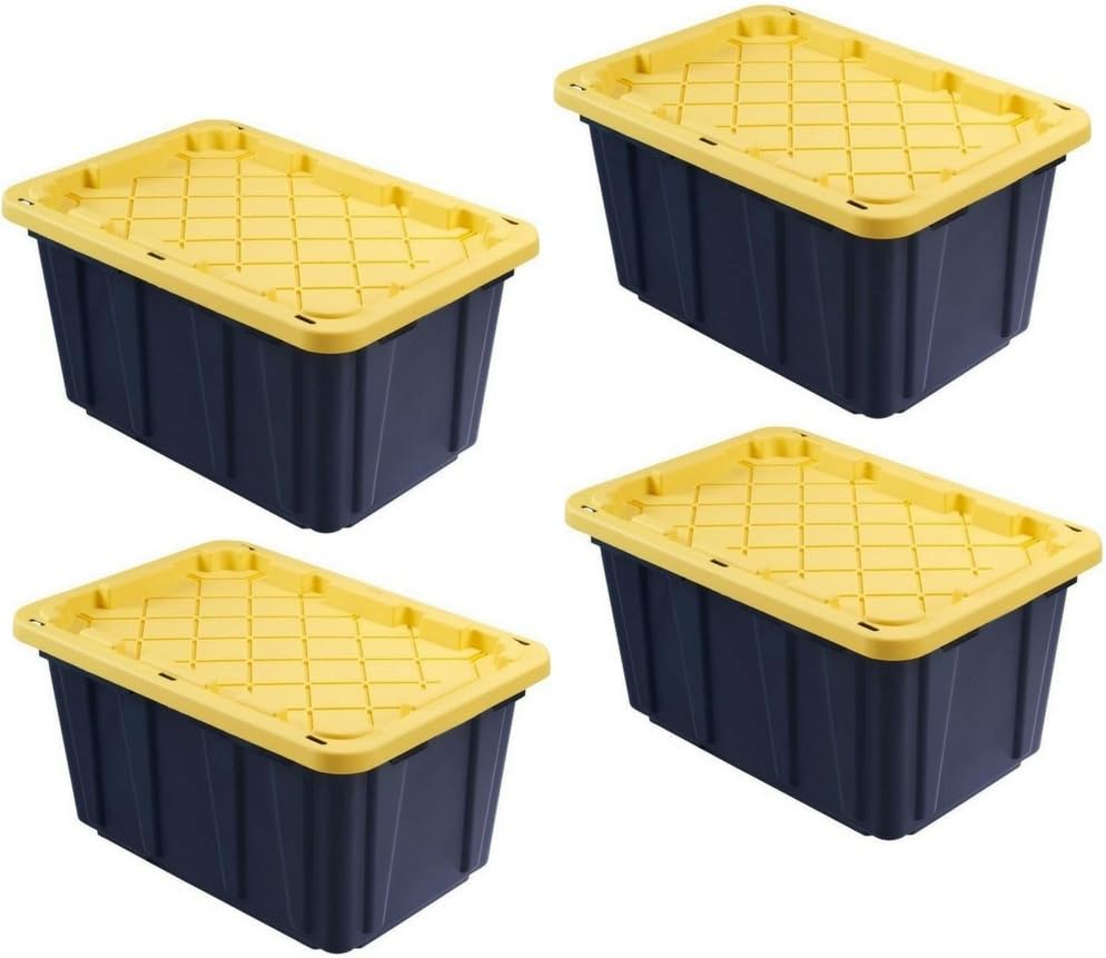 Plastic Storage Bin With Lid 27 Gallon Black And Yellow