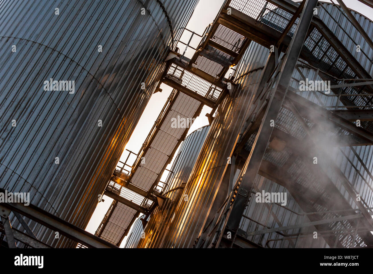 Massive Storage Containers At A Brewery Manufacturing Plant Stock