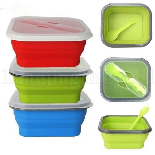 Folding Silicone Lunch Box Food Storage Container Kitchen