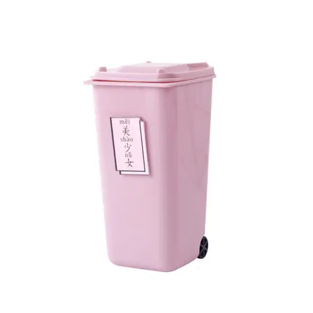 Pink Trash Can Shape Desktop Storage Box With Lid Desk Plastic