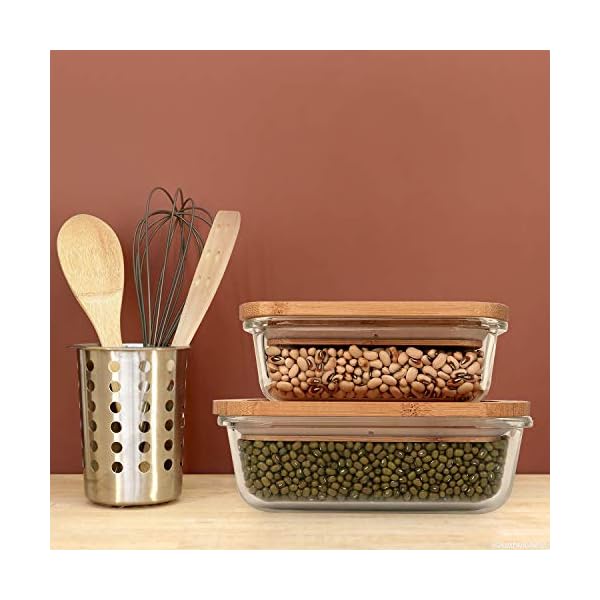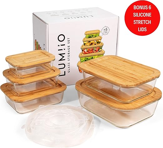 Amazon Com Glass Food Storage Containers With Lids Bamboo Set