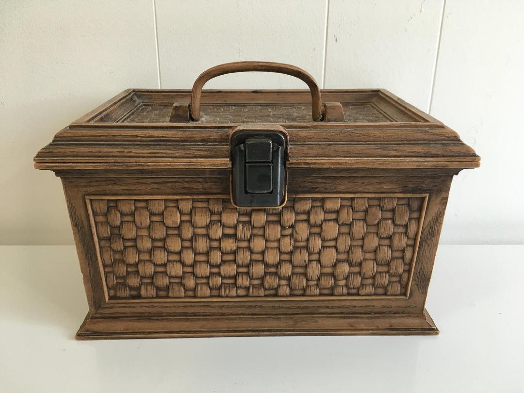 Vintage Lerner Sewing Box Chest Organizer Holder Faux Bois Dark