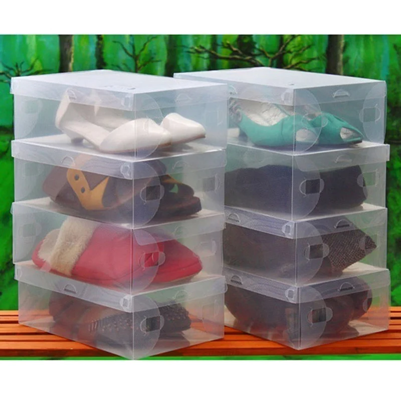 New Sale 10pcs Transparent Plastic Stackable Shoe Box Case Home