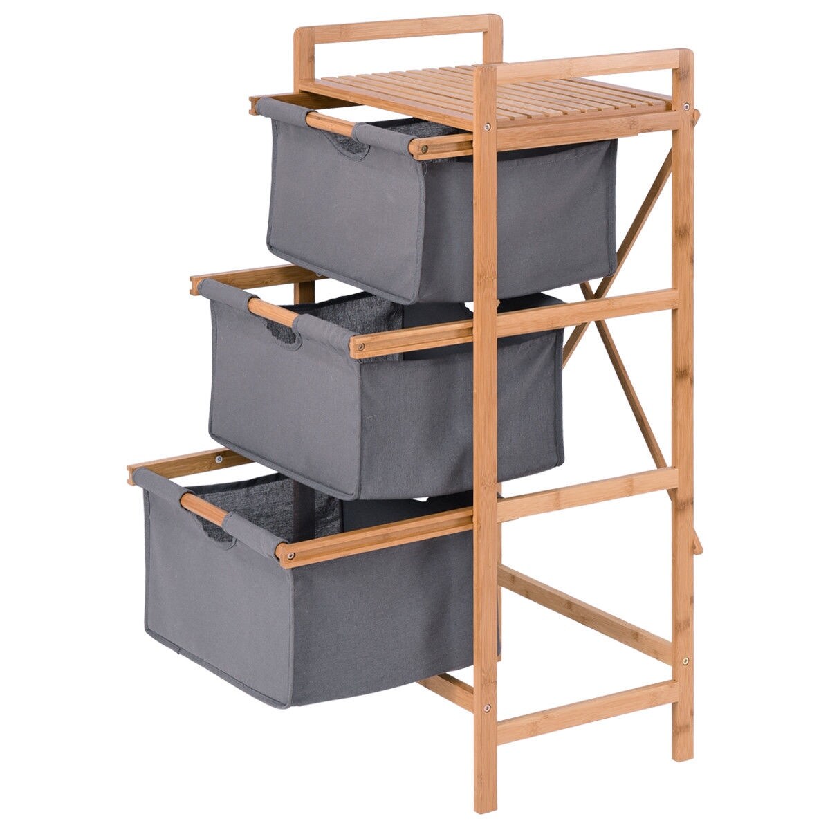 Shop Costway 3 Drawer Bamboo Shelf Dresser Sliding Cloth Fabric
