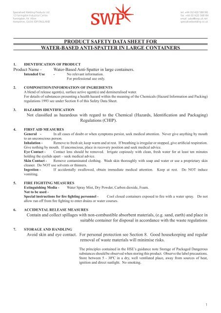 Anti Spatter Spray Large Containers Pdf Swp