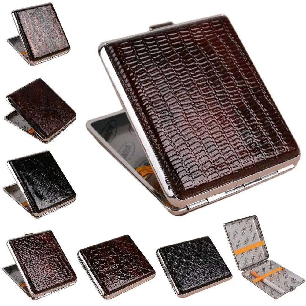 Retro Leather Metal Cigarette Box Pouch Case Holder Aluminum