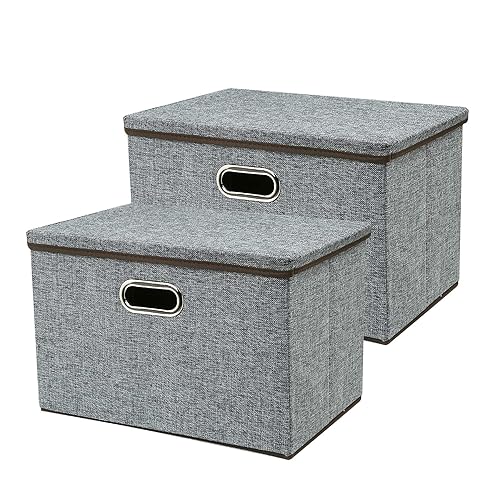 Kigucos Large Linen Fabric Storage Box Foldable Cube Bins Bedroom