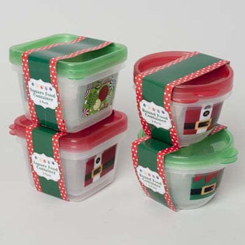 Food Storage Container 2pk Square Round W Christmas Print Case