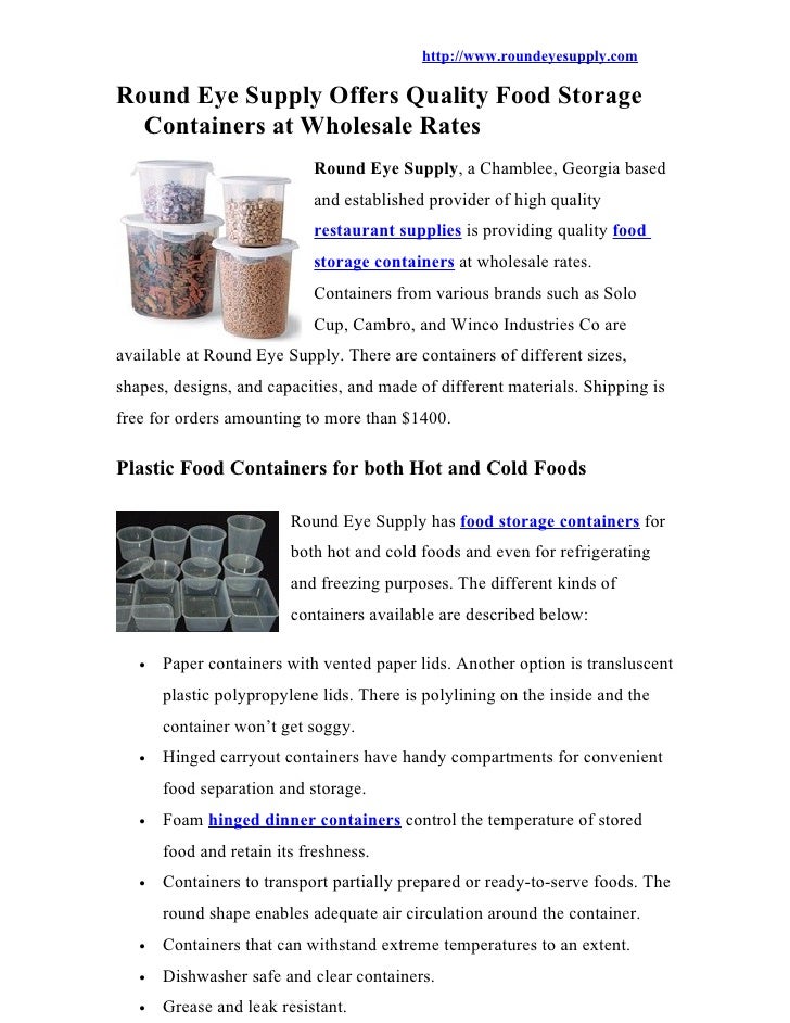 Round Eye Supply Offers Quality Food Storage Containers At Wholesale