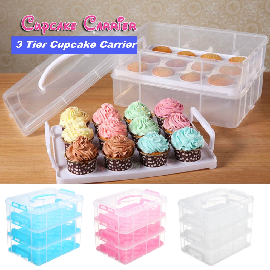 3 Tier 36 Pieces Locking Cupcake Holder Carrier Container Shopee