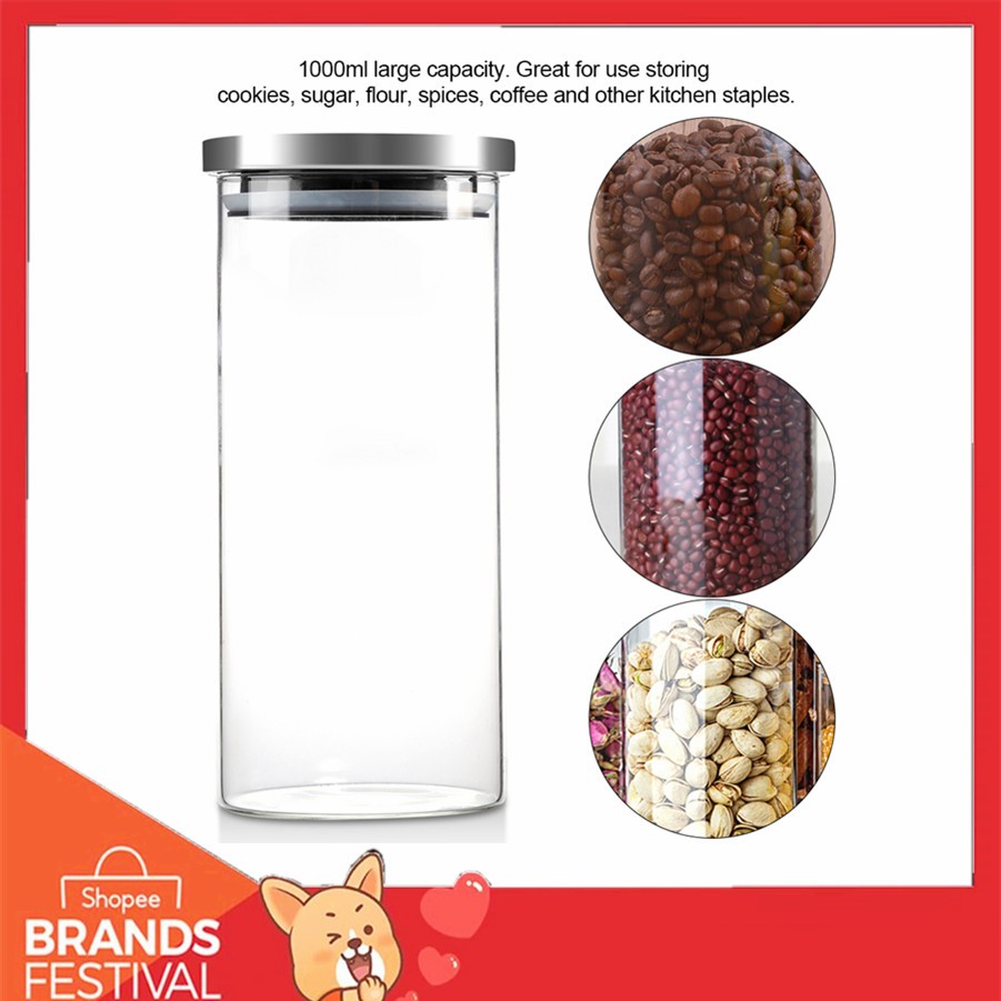 1000ml Glass Storage Jar Coffee Beans Kitchen Food Container