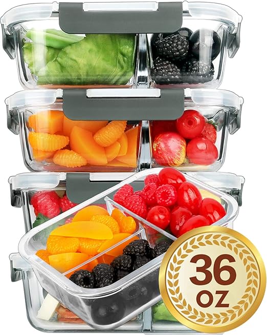 Amazon Com 5 Packs Glass Meal Prep Containers 3 Compartment With