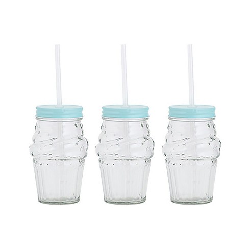 Amici Home Ice Cream Green Lid 16 Oz Glass Mason Jars With