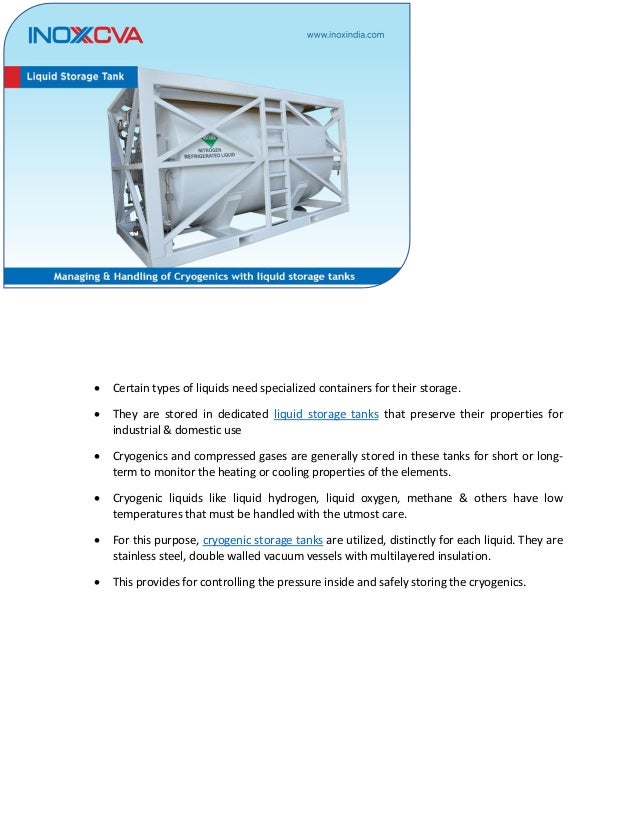 Managing And Handling Of Cryogenics With Liquid Storage Tanks