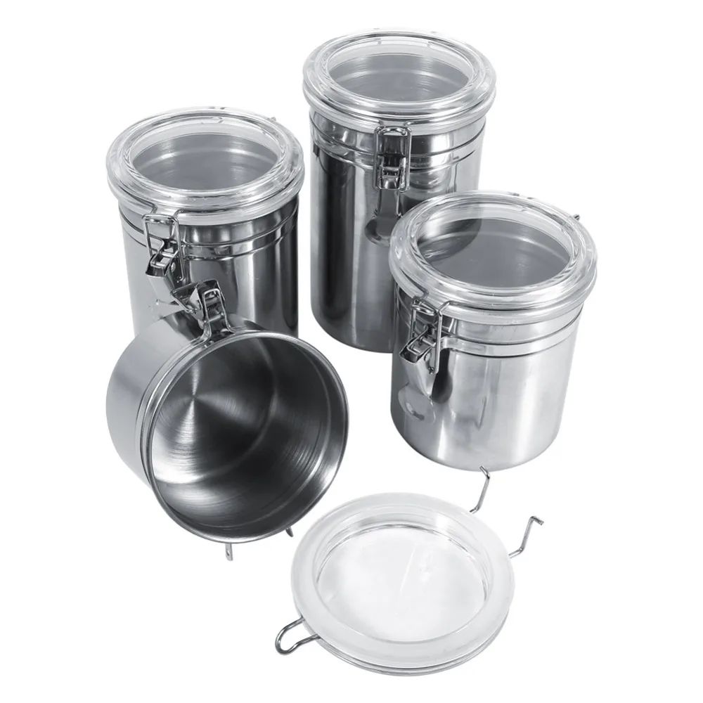 4pc Canister Set Containers Air Tight Glass Kitchen Food Stainless