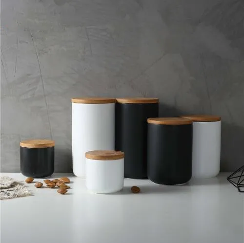 Ceramic Wood Lid Sealed Cans Kitchen Storage Jars For Food Coffee
