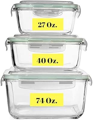Extra Large Glass Food Storage Containers With Airtight Lid 6 Pc