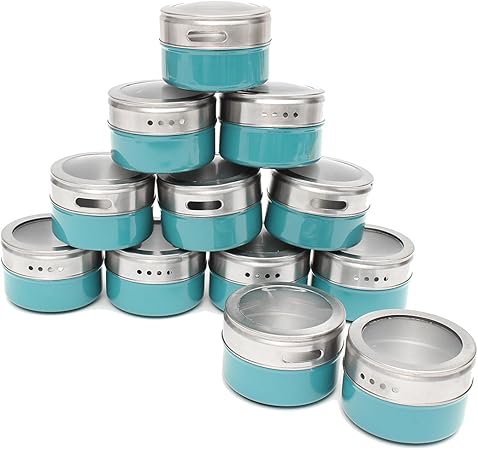 Skymore 12pcs Magnetic Spice Tins Set Stainless Steel Round