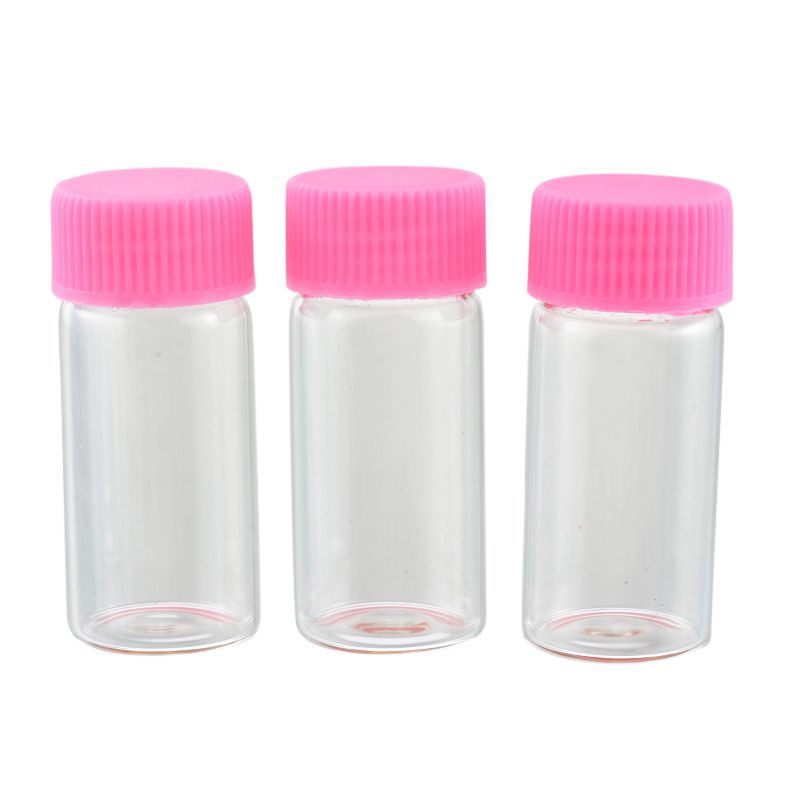 Small Mini Glass Jars With Pink Plastic Top Bottles Spice Storage