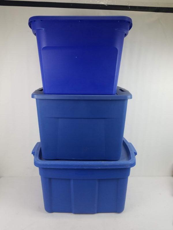 3 Storage Bins With Lids Blue 18 Gallon 22 Gallon 25 Gallon