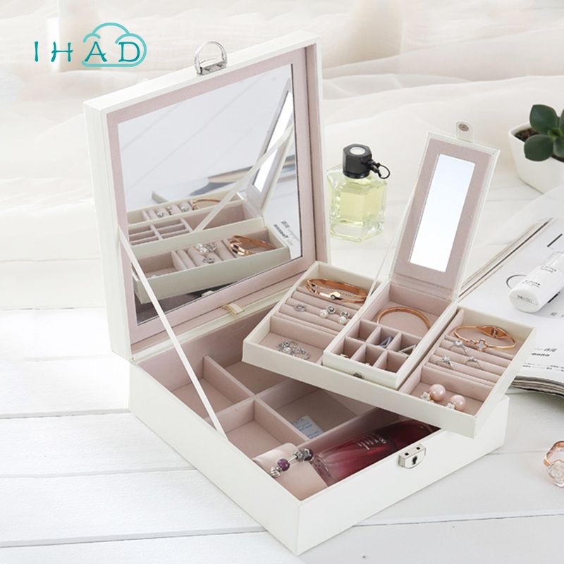 2020 Luxurious Pu Leather Jewelry Box With Mirror Creative High