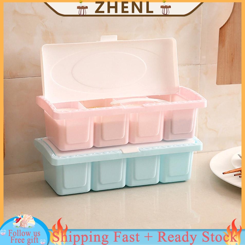 Bundleplastic 4 Grid Seasoning Storage Box Set Salt Condiment
