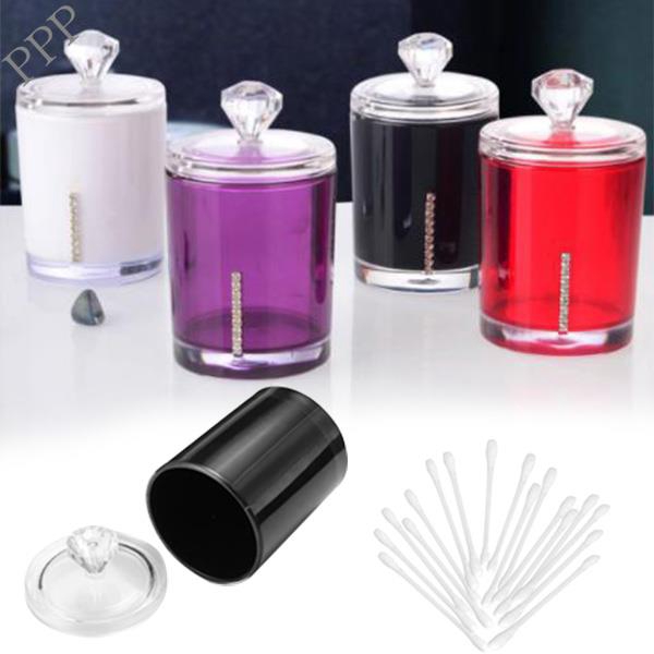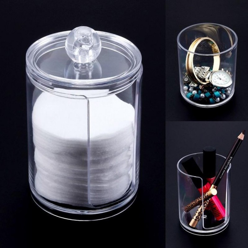 Clear Acrylic Cotton Swab Organizer Box Protable Cosmetics Round