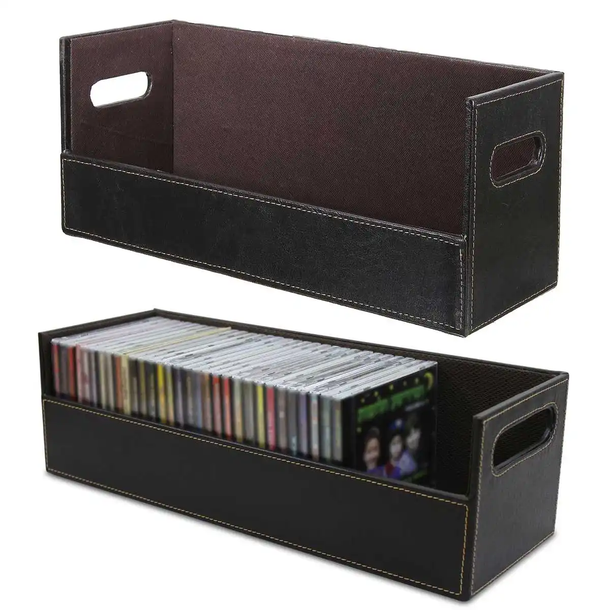 Leather Cd Storage Box Case Portable Data Line Earphone Wire