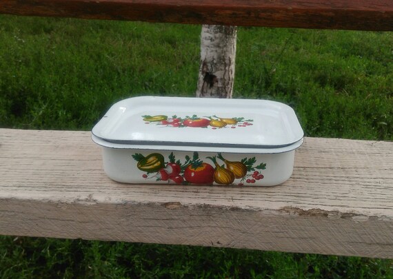 A wide variety of enamel storage container options are available to you such as metal type feature and plastic type. No matter what youre looking for or where you are in the world our global marketplace of sellers can help you find unique and affordable options. Golden hills mercantile bacon grease container with mesh strainer rustic mid century modern farmhouse design white enamel on metal 4 inch x 4 inch vintage enamelware with lid black.