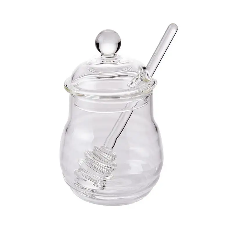 300ml Safe Glass Honey Pot With Stirring Rod Durable Transparent