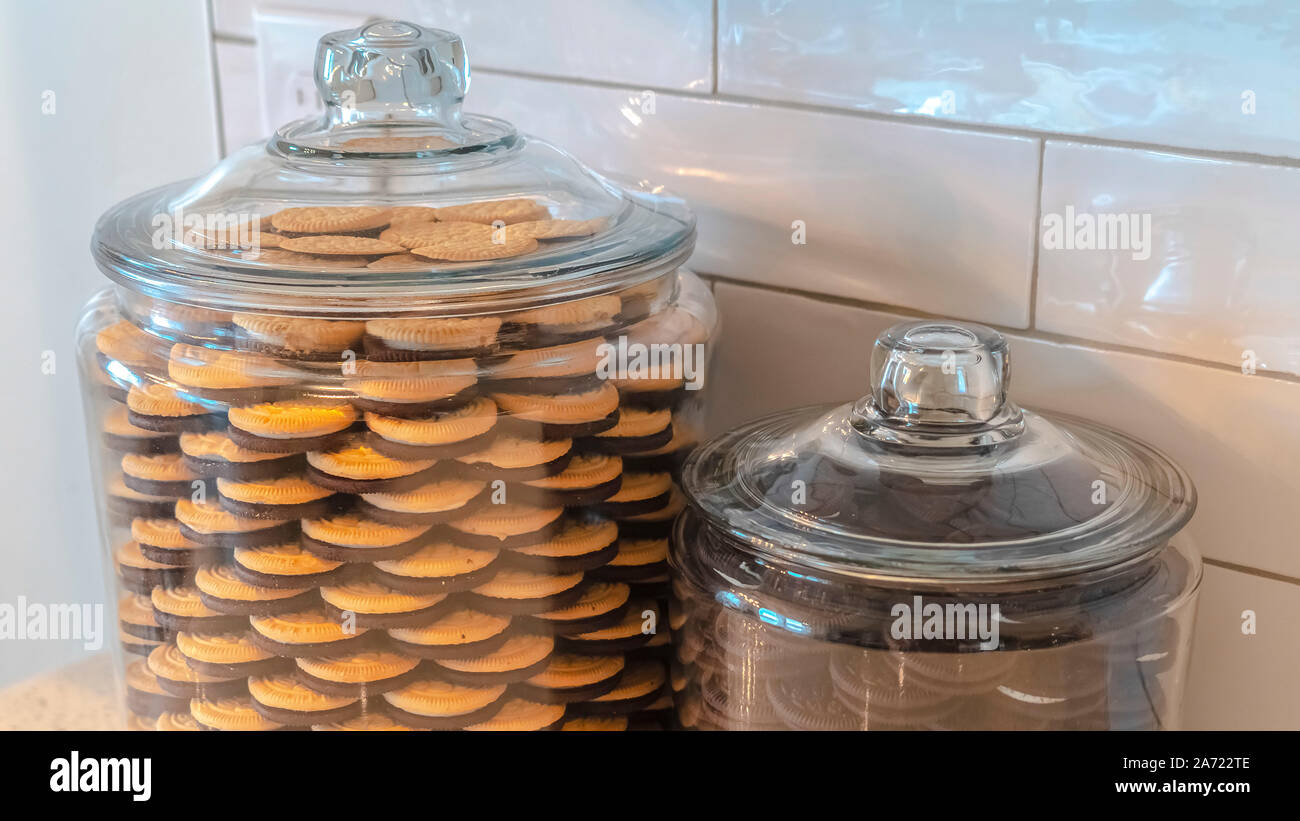 Panorama Frame Glass Storage Jars Filled With Cookies In Kitchen