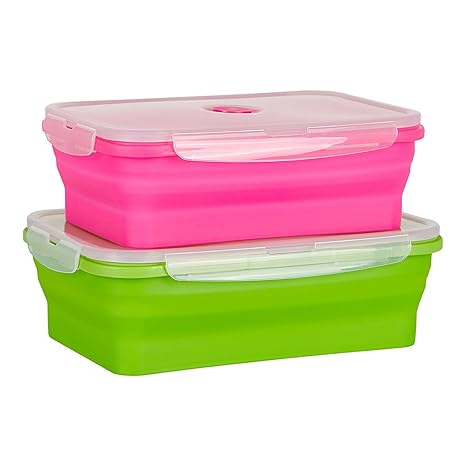 Flat Stacks Collapsible Silicone Food Storage Container Set Of 2 Large