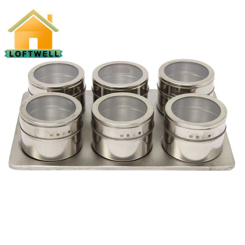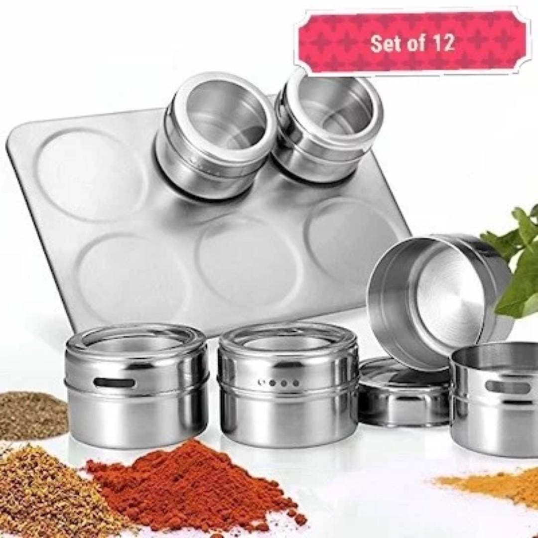 12pcs Set Clear Lid Magnetic Spice Tin Jar Stainless Steel Spice