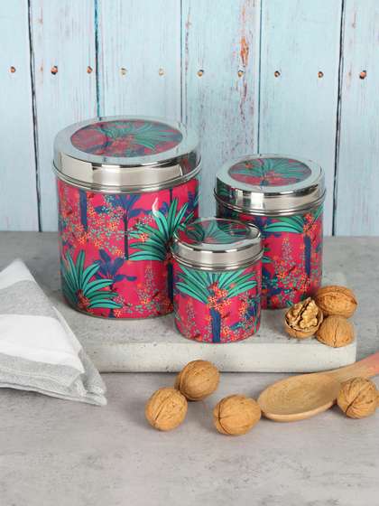 Sumeet stainless steel airtight leak proof food storage containers set of 3 pc size small capacity 300ml each 32 out of 5 stars 6 304 304 650 650 save 346 53. 4 set with lids 86 64 48 36 fl oz. Buy kitchen storage online in india at best price.