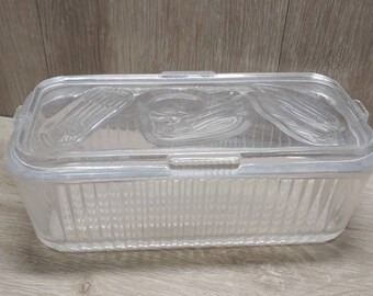 Vintage Federal Ribbed Clear Glass Refrigerator Dish Vegetable