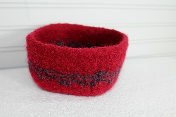 Wool Bowl Cranberry Red And Gray Knit Felt Storage Basket Etsy