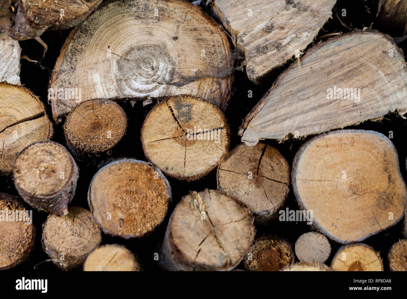 Sawed Tree Trunks And Branches In Different Sizes Piled Up In