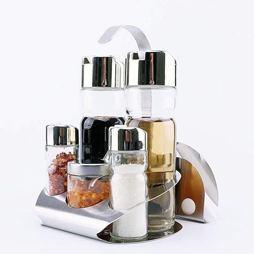 Amazon Com Five Piece Spice Rack Set Stainless Steel Glass Jar