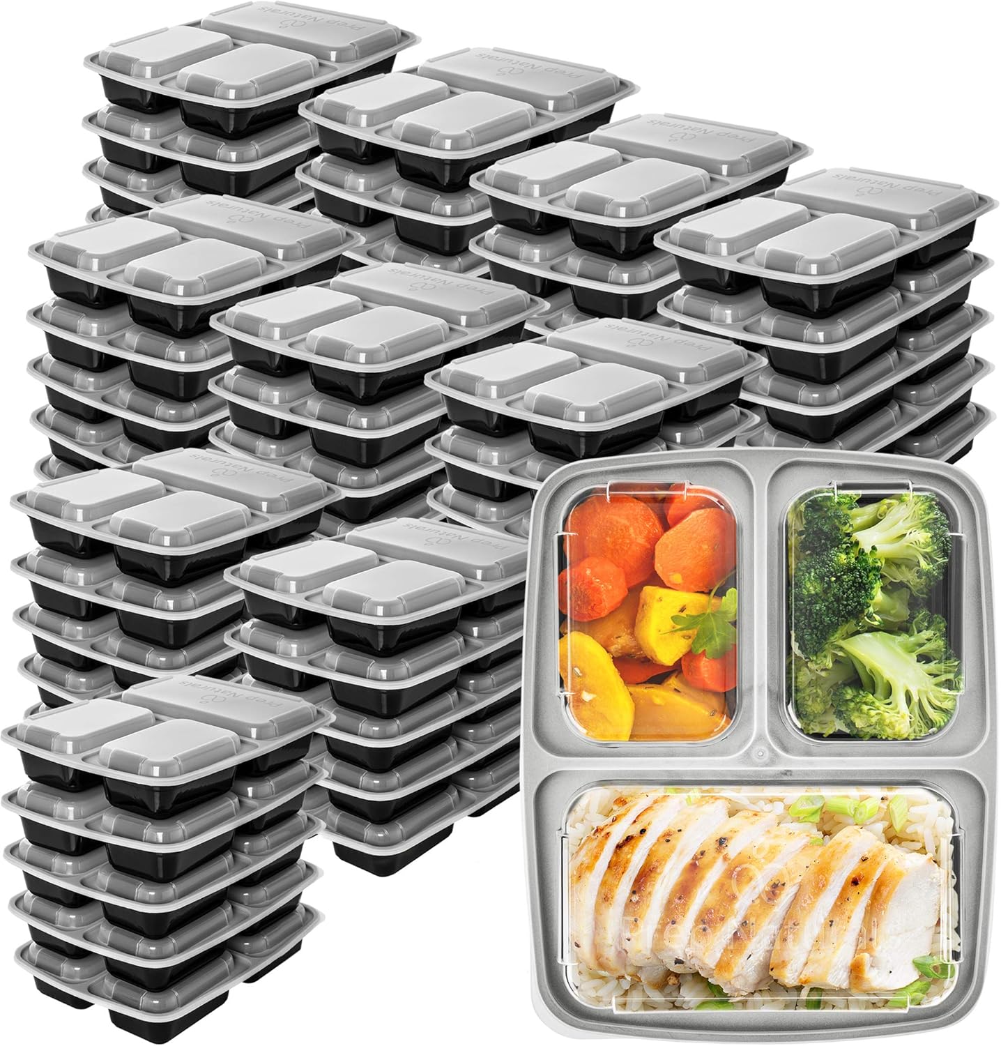 Prep Naturals Glass Meal Prep Containers 3 Compartment Food