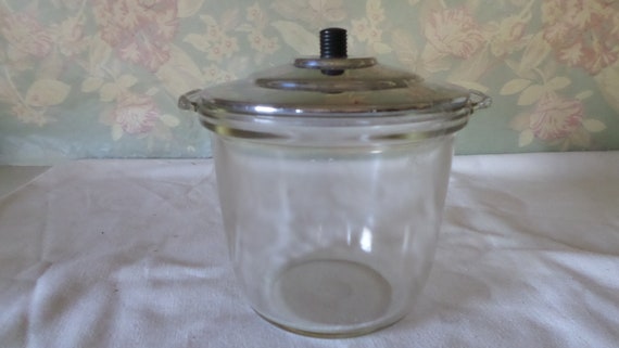 Vintage Pyrex Glass Bean Pot With Chromed Lid Etsy