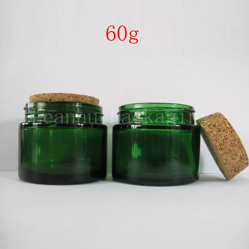 60gx15 Green Glass Jar With Cork 60cc Mask Cream Packaging Bottle