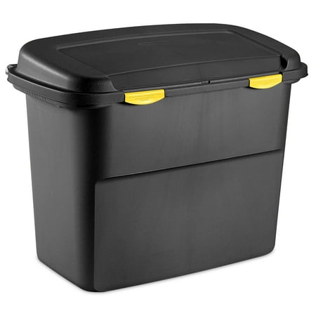 Shop a wide selection of storage bins containers and totes for industrial storage home office and other commercial applications. Homz tough durabilt tote box 27 gallon stackable 2 pack set of 2 black and yellow 2 piece. Suncast 50 gallon medium deck box lightweight resin indooroutdoor storage container and seat for patio cushions and gardening tools store items on patio garage.