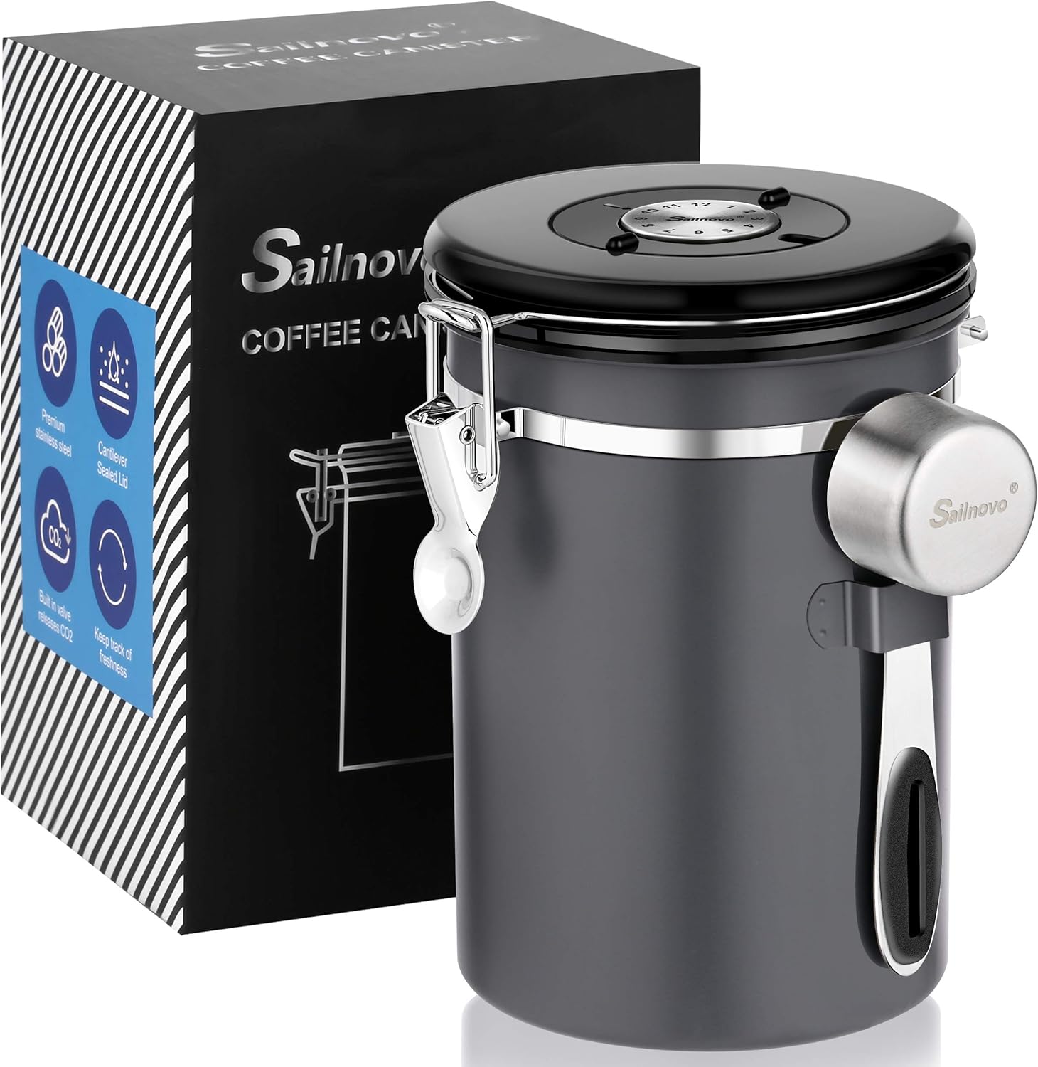 Veken coffee canister airtight stainless steel kitchen food storage container with date tracker and scoop for beans grounds tea flour cereal sugar 22oz gray. Star coffee container airtight coffee storage stainless steel canister with measuring scoop for beans or ground coffee 5 co2 valve filters freshness calendar ebook large coffee holder 22oz. Others make a royal mess with those compacted coffee packagesread on so you can find the best airtight coffee container to.