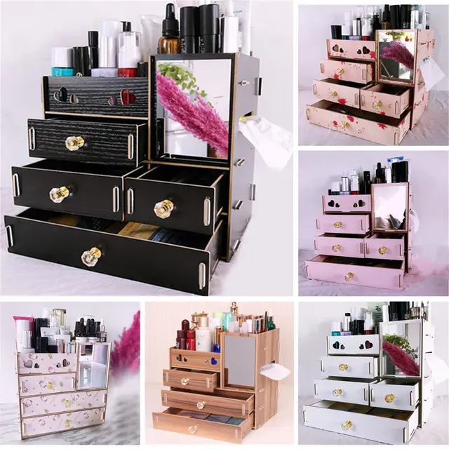 Makeup Box Funique Wooden Cosmetic Storage Small Drawer Jewelry